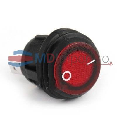 Intrerupator ON-OFF, 12V, 20A, rosu, cu cauciuc, rotund, potrivit pentru utilizare in mediu umed |